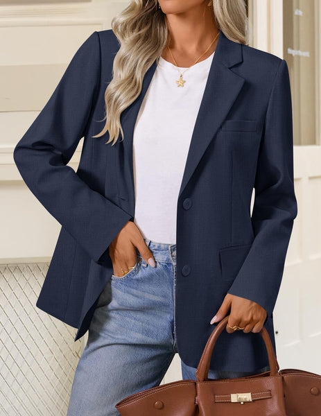 - Design: This oversized jacket features shoulder pads, a lapel collar,side pockets, button closure, and open front design for easy layering, creating a polished business casual look that pairs seamlessly with blouses or sweaters during cooler months.