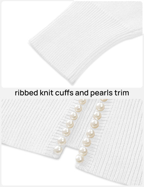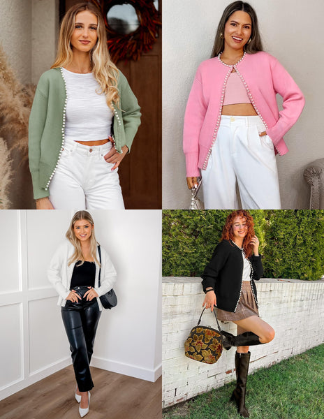 - Elegant cardigan coat features long sleeves, open front design, unique decorative pearl embroidery on collar and placket, solid color, ribbed knit cuffs/hem, a hidden snap button at the top of the neckline. No lining, no zipper, no pocket.